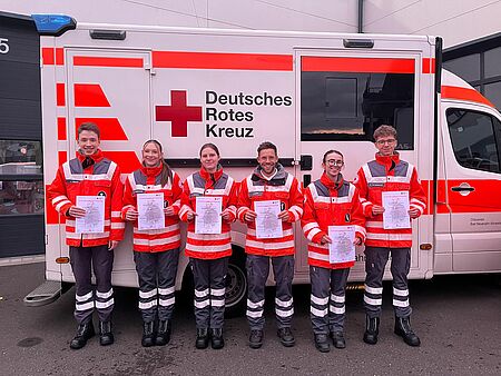Sechs Helferinnen und Helfer des DRK Ortsvereins Weibern haben erfolgreich ihre…